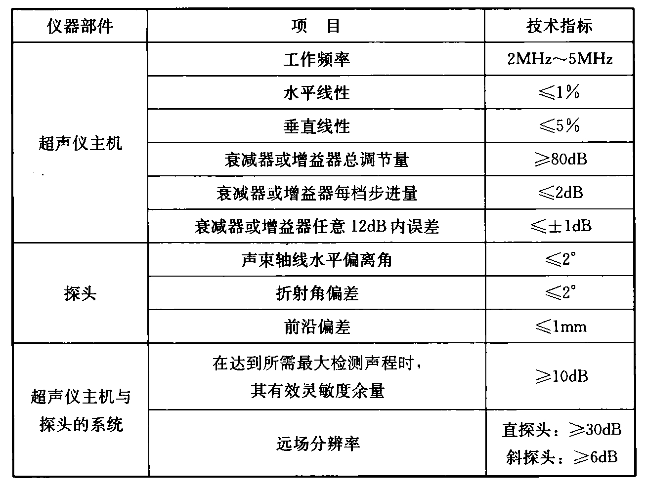 表7.2.1 A型脉冲反射式超声仪的主要技术指标