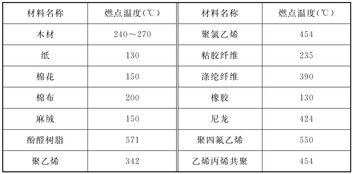 C.0.2 常见材料的燃点,应按表C.0.2取值。