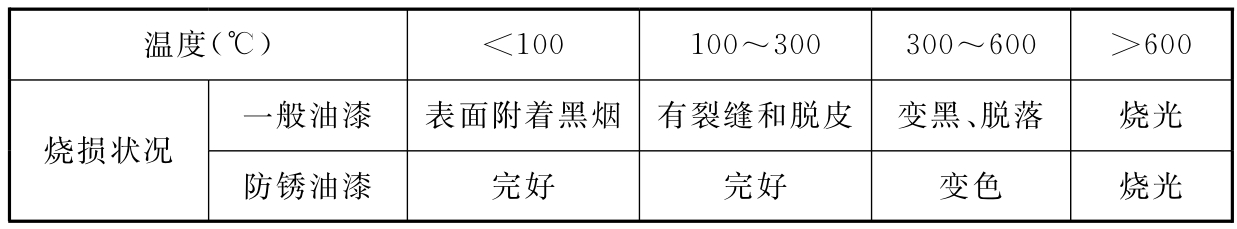 C.0.3 涂装用油漆在不同温度下的烧损状况,可按表C.0.3确定。