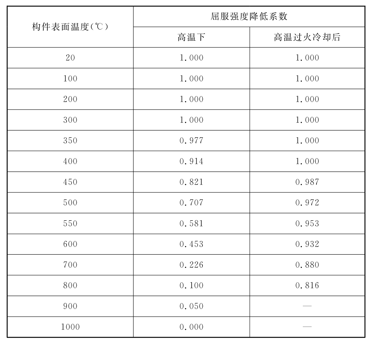 C.0.4 普通热轧结构钢在高温下及高温过火冷却后的屈服强度降低系数,应按表C.0.4取值。